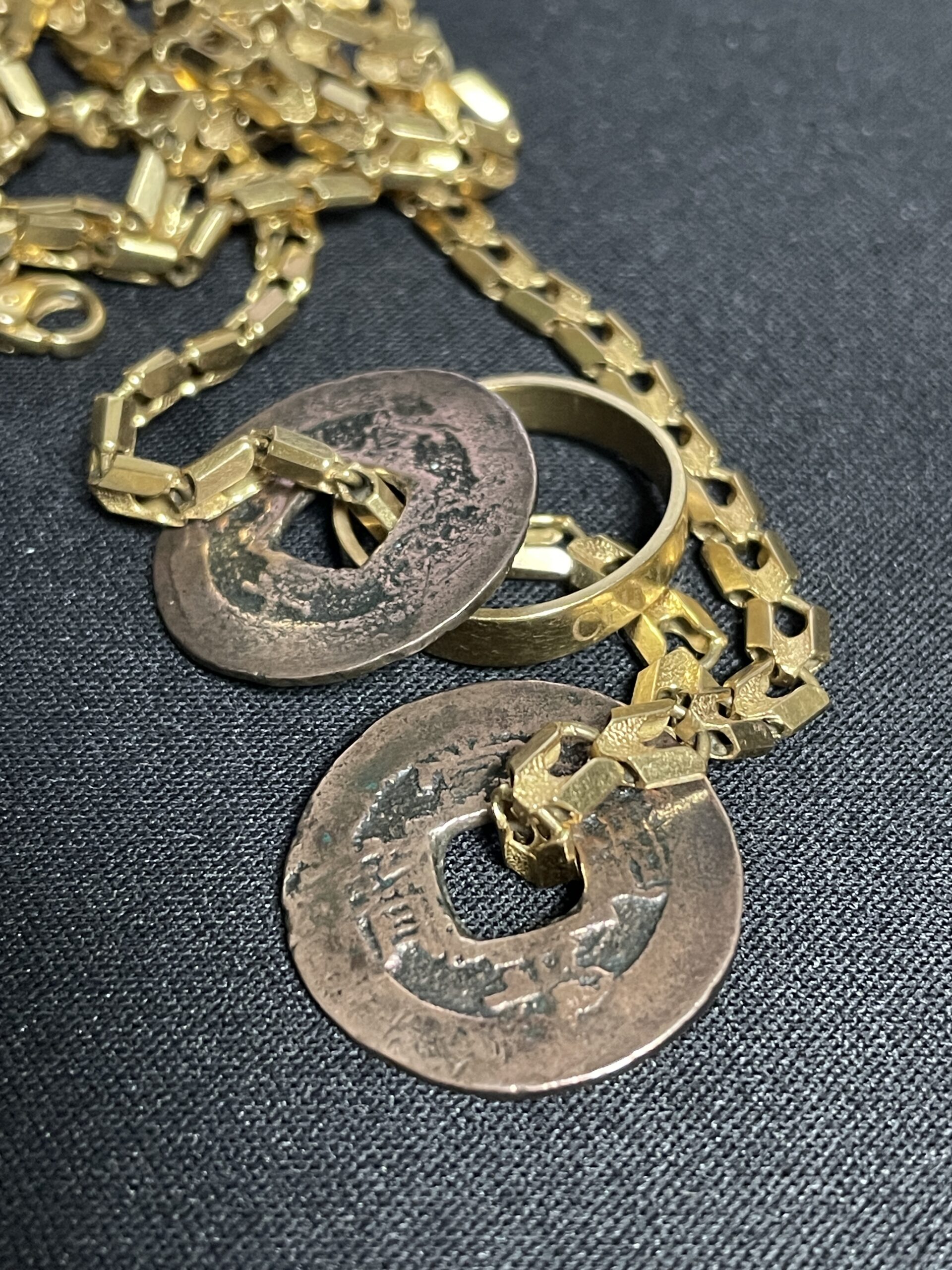 결국 가지고 싶은 마음을 못 이겨서 진품 상평통보를 두 개 샀다. 마음 가는 대로 드레멜에 피칼 묻혀서 싹 조져버리니 번쩍번쩍 광이 난다. 이걸 금반지와 함께 금목걸이에 꿰어 차고 다니는데, 걸을 때마다 들리는 그 짤랑거리는 소리가 참 좋다.