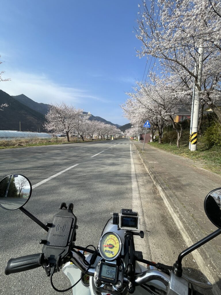 흐드러지게 핀 벚꽃 사이를 50cc 뽈뽈이로 느릿느릿 지나가니, 이게 참 고배기량 탈 때와는 또 다른 낭만이 있네요~~~!! 벚꽃 지기 전에 다들 소중한 애마와 함께 짧게라도 바람 쐬고 오시길 추천드립니다…!! ㅋㅋㅋ